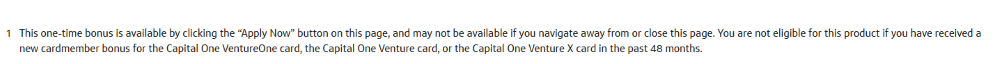 You must apply for the cards in the above order if you want to earn the signup bonus on each. If you apply for the Venture X card first, you will be ineligible to receive the signup bonus on the VentureOne and Venture Rewards cards.